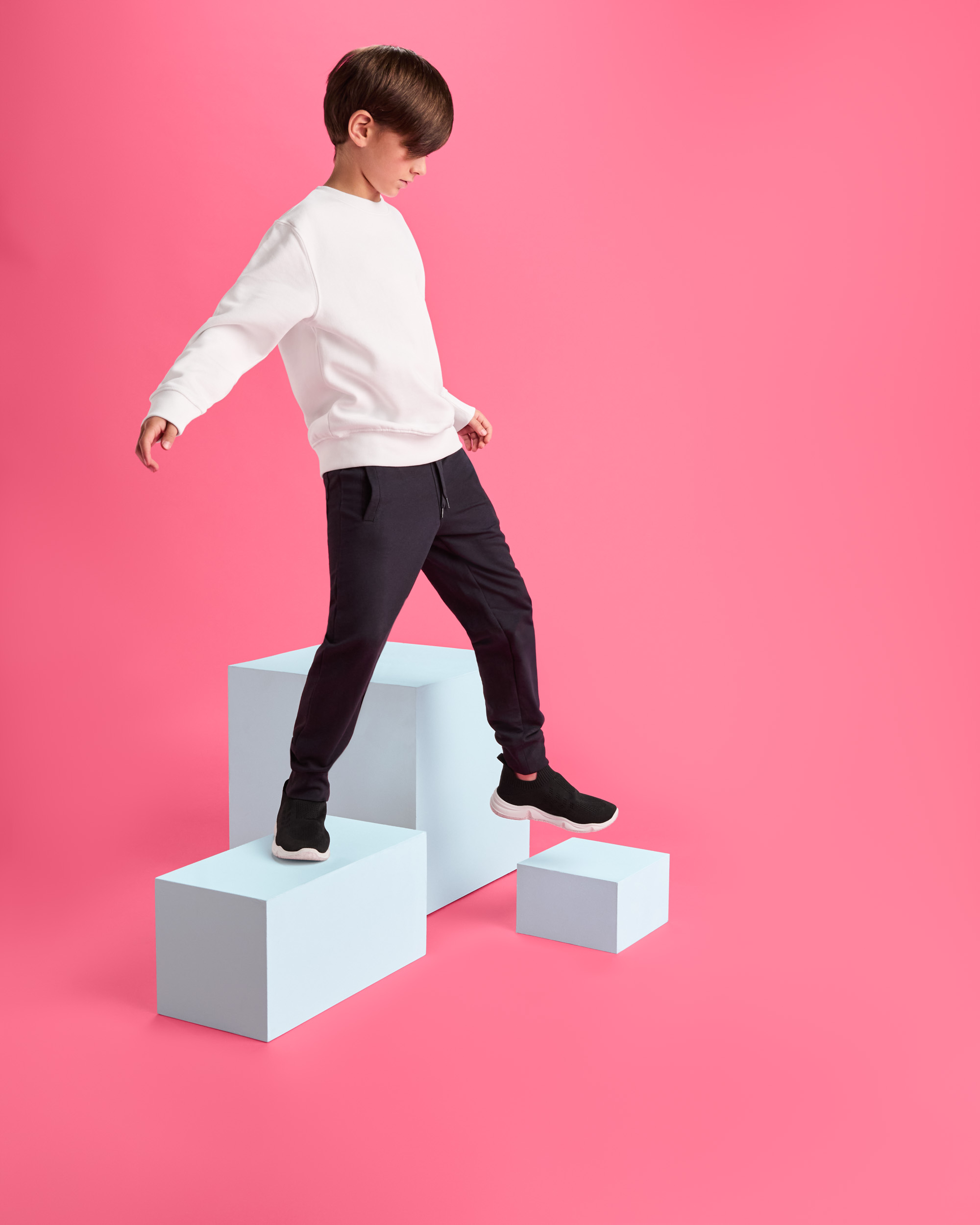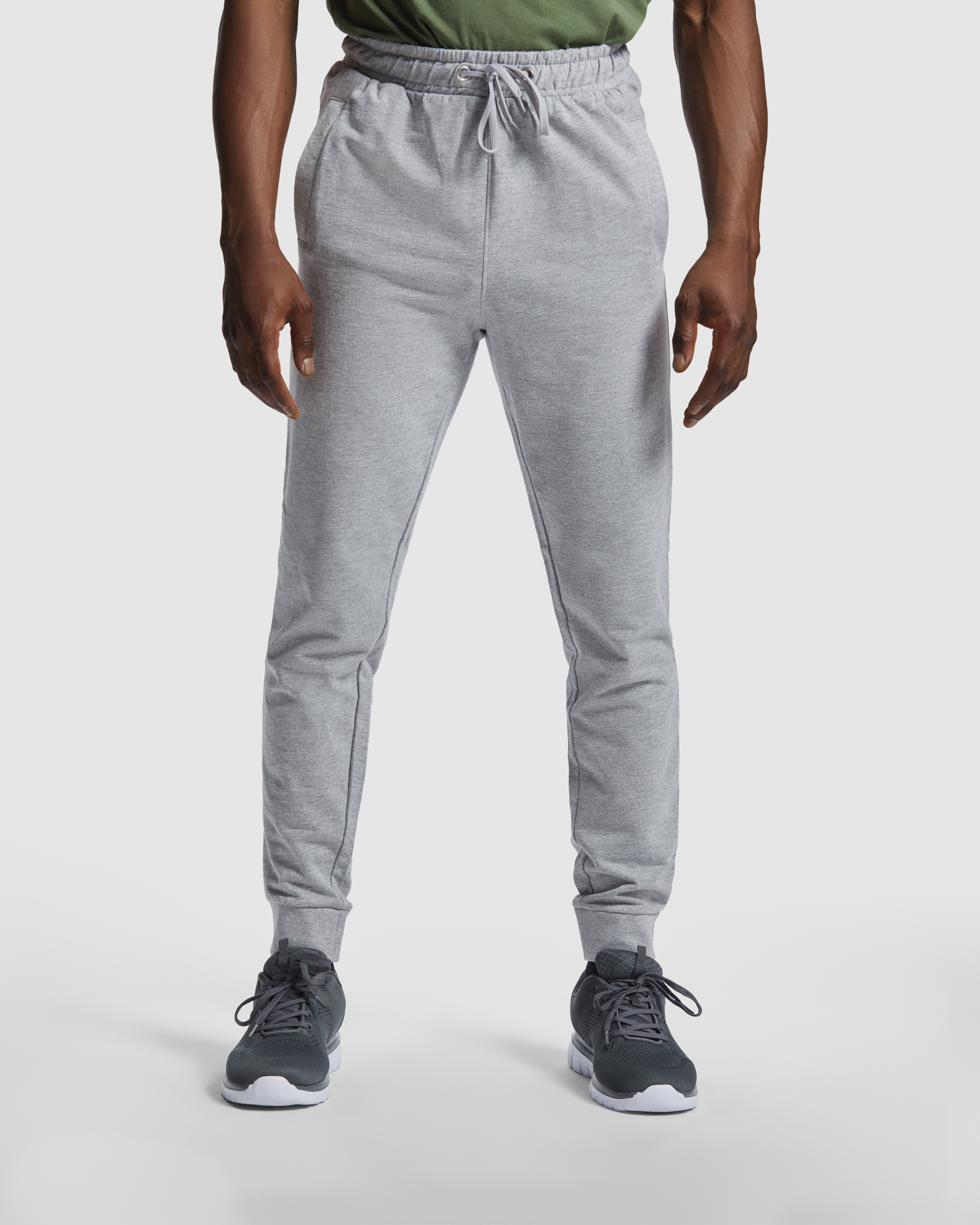 Pantalón largo recto de felpa no perchada básico. Bolsillos laterales con cremallera en tallas de adulto. Cinturilla engomada con cordón ajustable y ojales metálicos. Bolsillo trasero con cierre de velcro. Puños en rib 1×1.