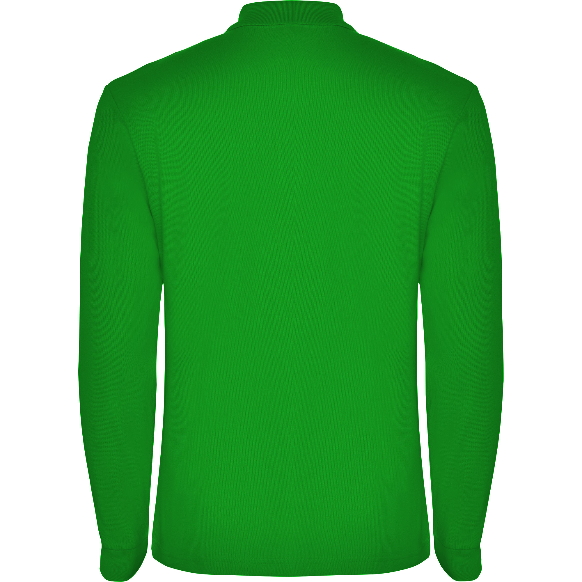 Polo de manga larga de algodón. Punto piqué. Cuello y puños tejidos 1×1. Tapeta de 3 botones. Cubrecosturas en cuello del mismo tejido. Bolsillo opcional.