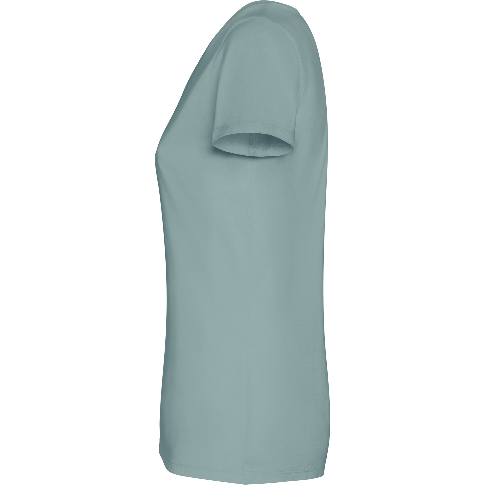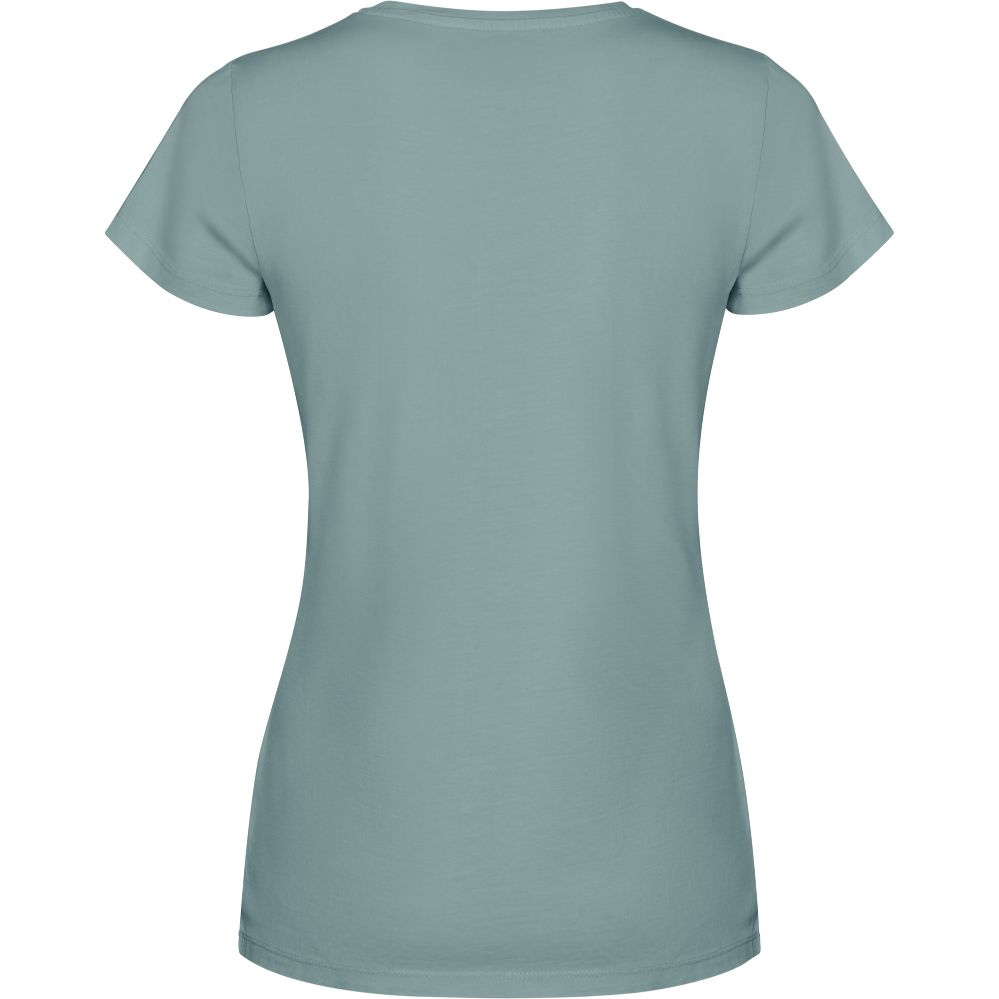 Camiseta woman de manga corta en algodón peinado efecto lavado. Cuello redondo en canalé 1×1. Cubrecosturas en cuello del mismo tejido. Costuras dobles en laterales y sisas.