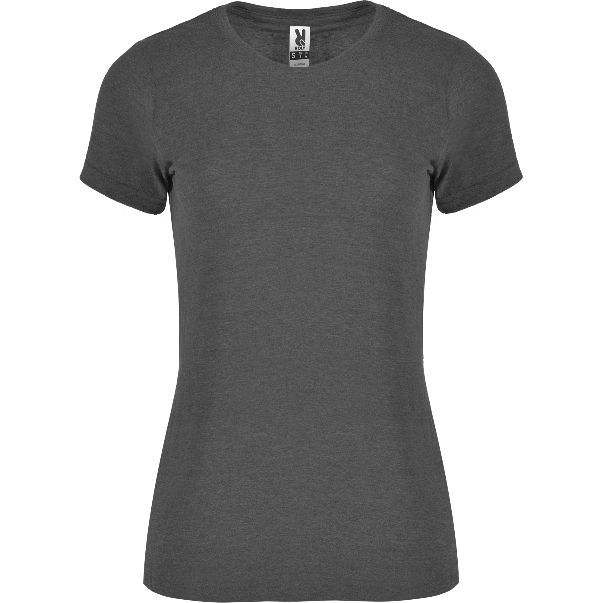 Camiseta de manga corta ligeramente entallada en cintura. Cuello redondo en canalé 1×1. Cubrecosturas en cuello del mismo tejido.