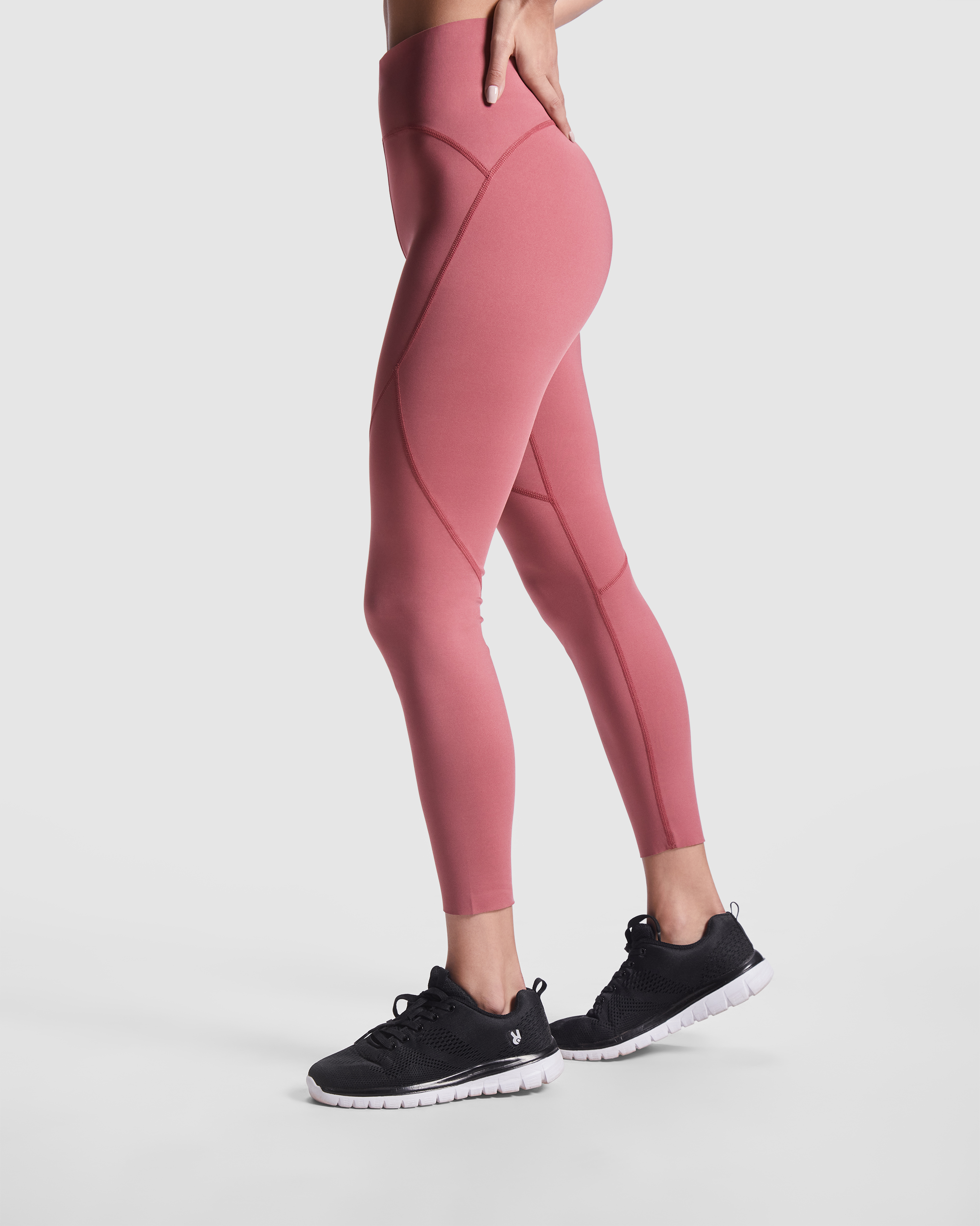 Malla larga compresora reciclada. Cintura ancha siliconada. Corte láser en la cintura. Costuras anti roce en sus piezas. Certificado GRS.