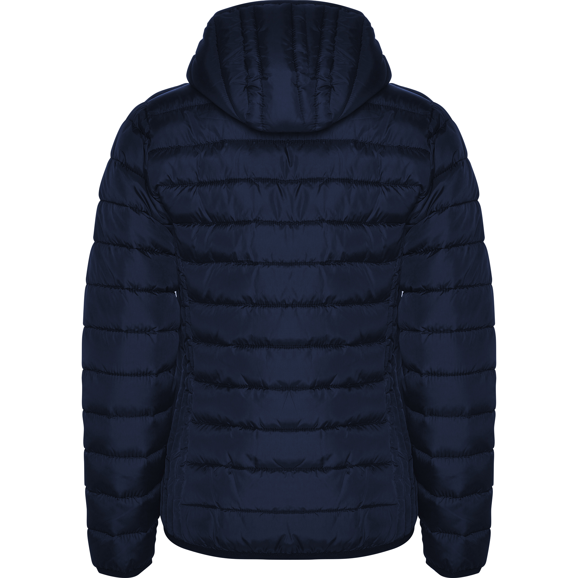 Chaqueta con capucha acolchada repelente al agua y resistente al viento. Cremallera frontal invertida al tono con protector de barbilla del mismo tejido. Bolsillos laterales con cremalleras invertidas al tono insertados en los paneles laterales con forma en pecho para mejor ajuste. Vivo elástico al tono en contorno de capucha, puños y bajo. Opción de colores lisos o a contraste en interior.