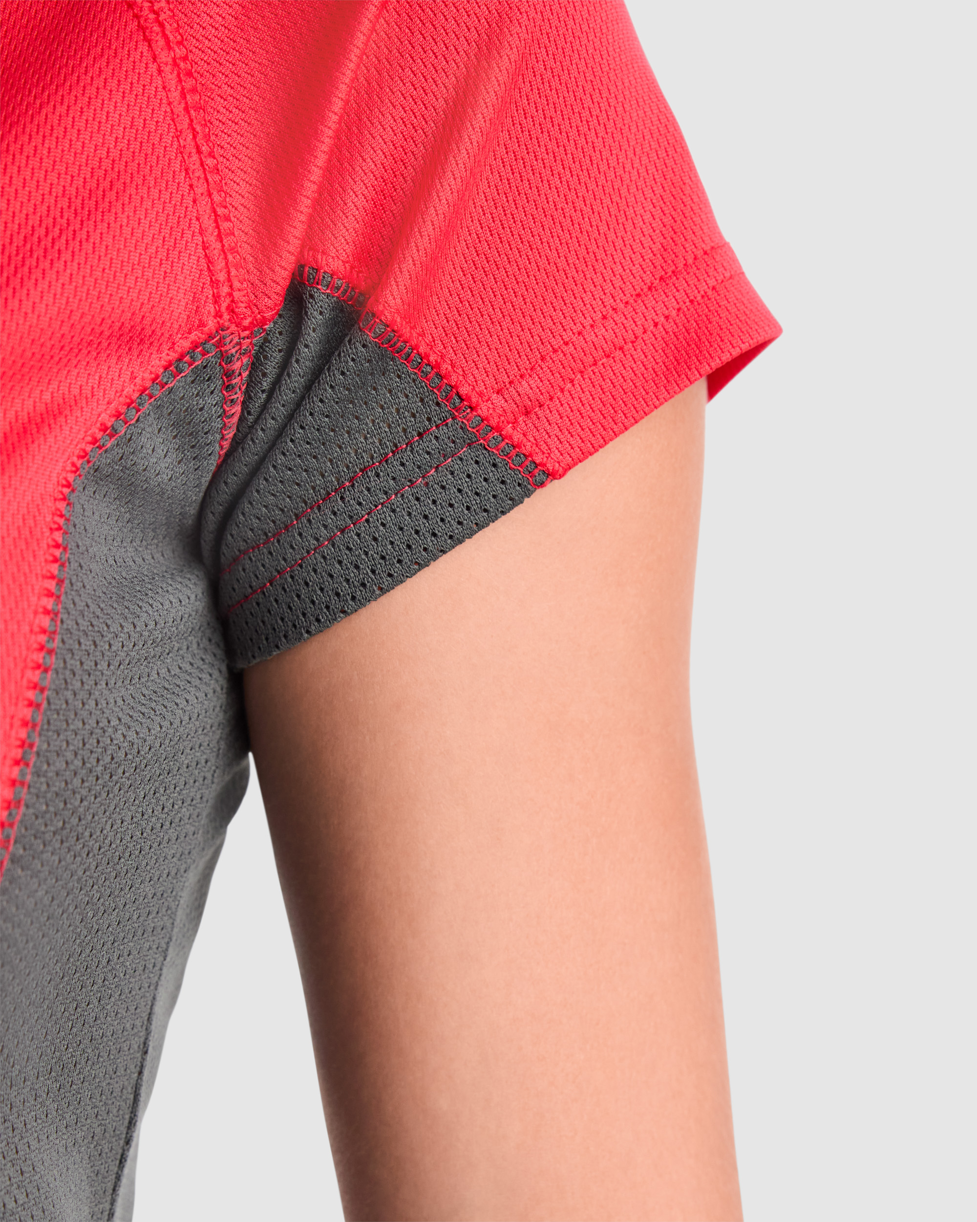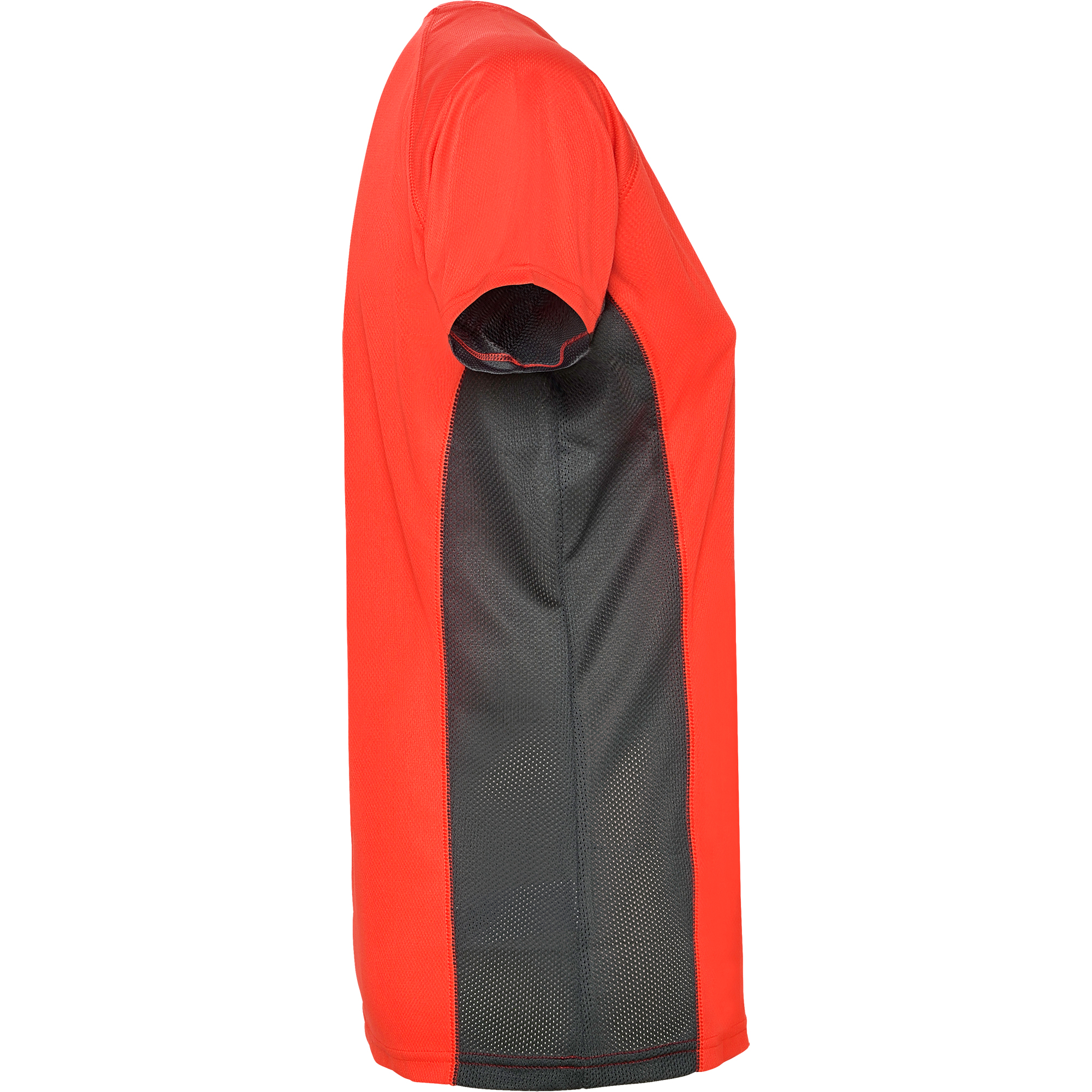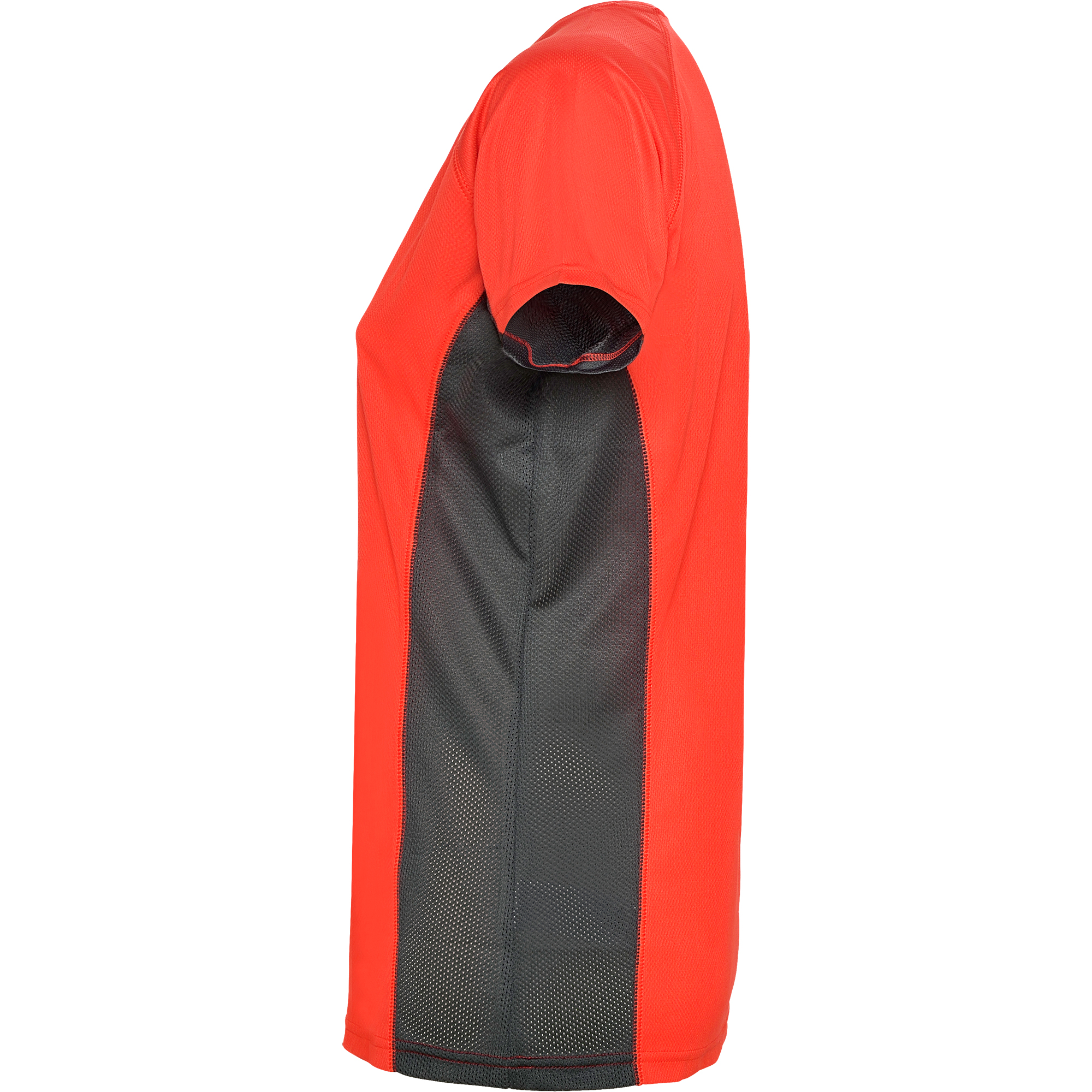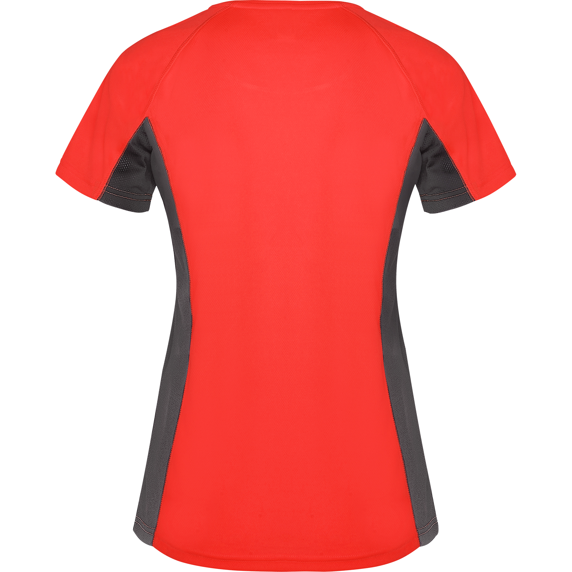 Camiseta técnica manga corta entallada transpirable bicolor. Paneles laterales en tejido microperforado. Cuello redondo y cubrecosturas del mismo tejido al tono.