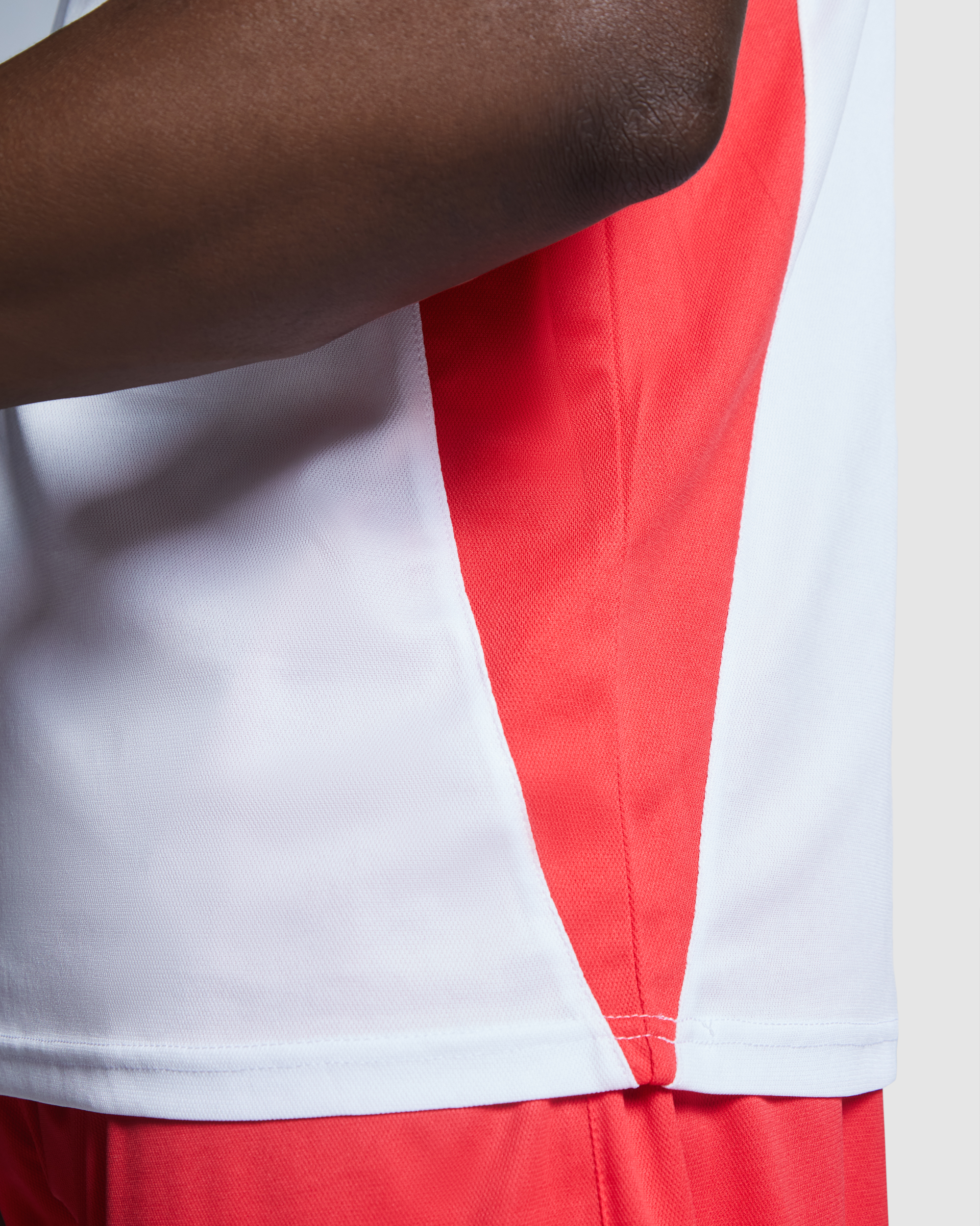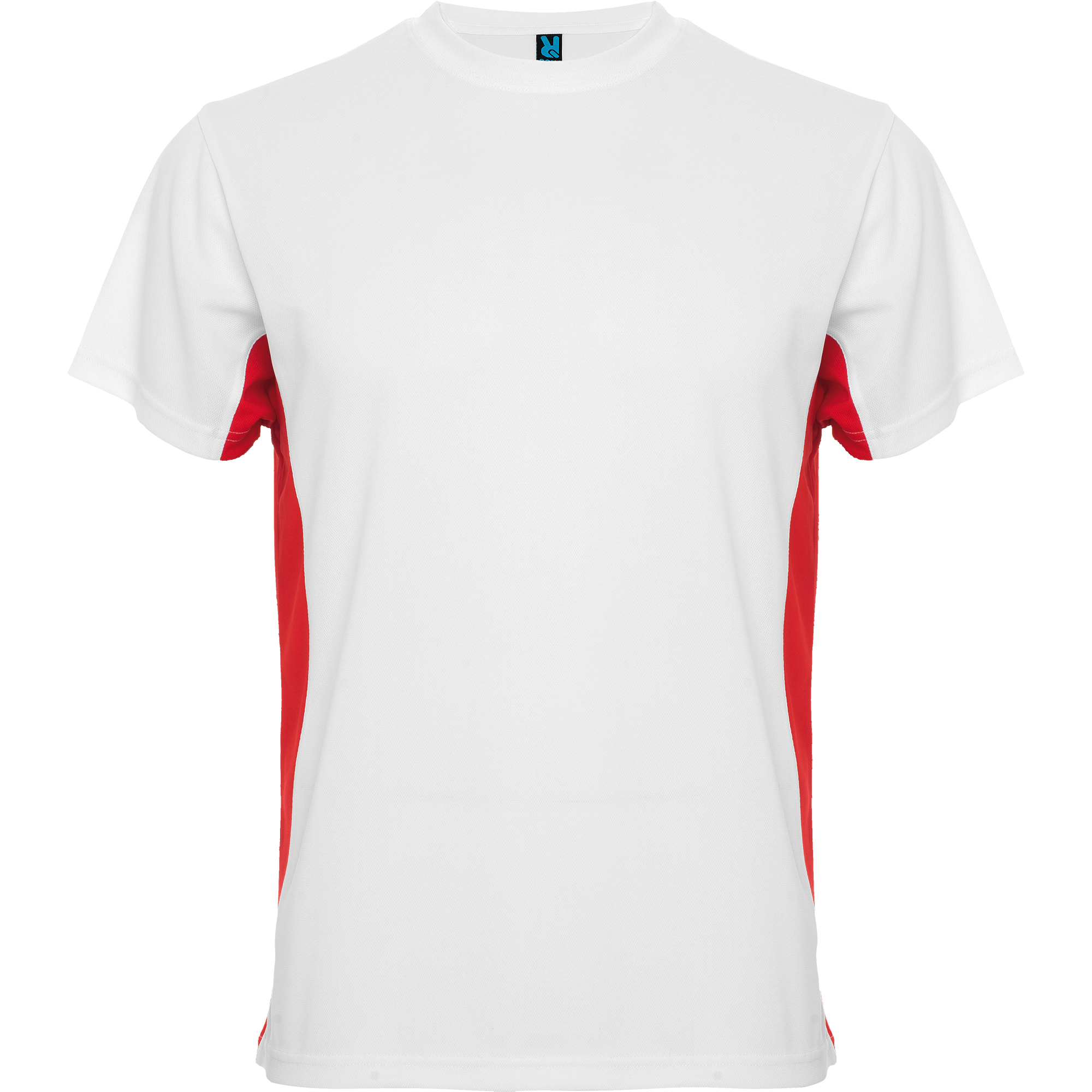 Camiseta técnica de manga corta transpirable. Cuello redondo con cubre costuras a tono. Tejido de fácil secado. Combinación de colores, paneles laterales a contraste.