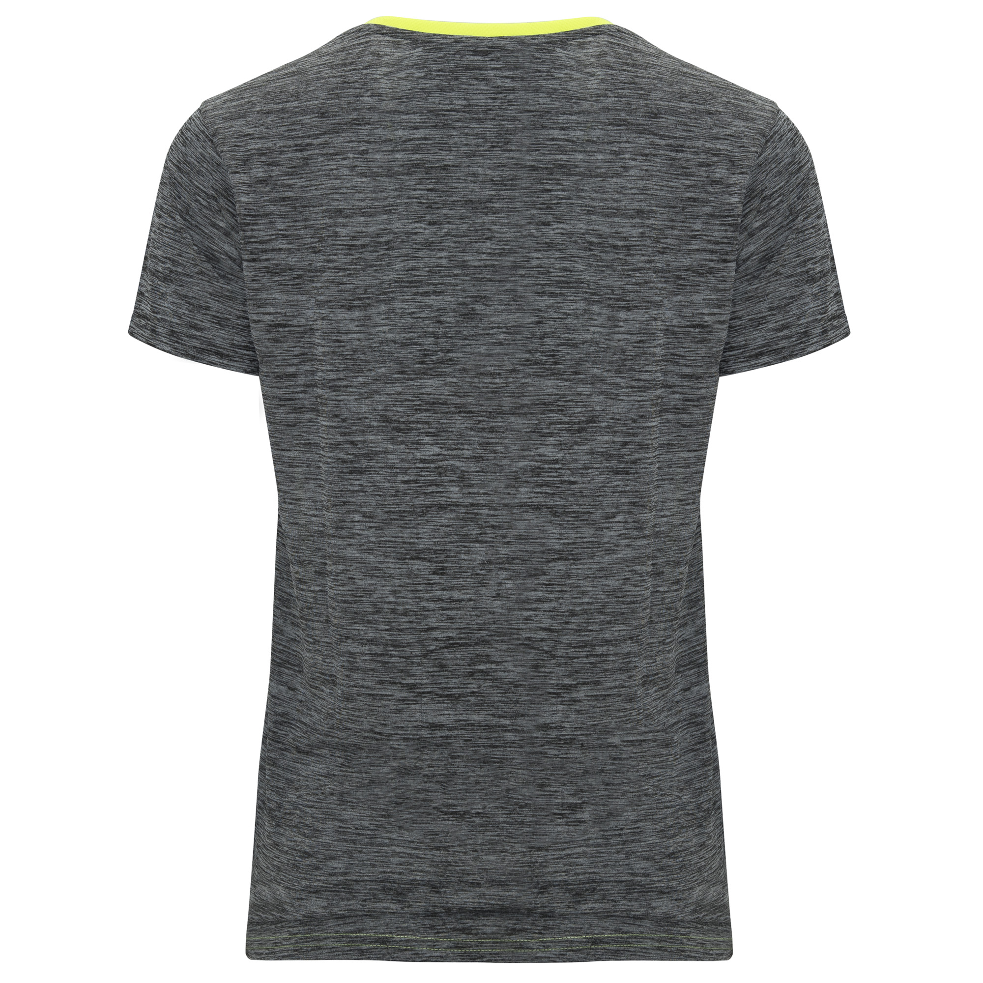 Camiseta técnica manga corta entallada transpirable. Combinación de tejidos y colores. Costuras antirroce. Cuello redondo y cubrecosturas del mismo tejido al tono del frontal.
