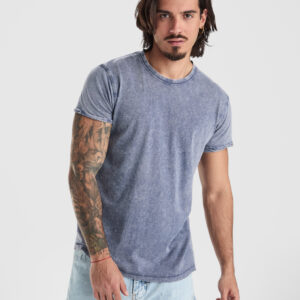 Camiseta de manga corta tubular con acabado vigoré. Cuello redondo en canalé 1×1. Cubrecosturas en cuello del mismo tejido.Composición: 65% poliéster / 35% algodón, punto liso, 150 g/m². Observaciones: *Etiqueta removible. *Duo concept.