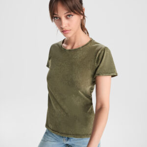 Camiseta de manga corta ligeramente entallada en cintura efecto lavado. Algodón peinado. Cuello redondo en canalé 1×1. Cubrecosturas en cuello del mismo tejido. Costuras dobles en laterales y sisas. Costuras decorativas en mangas y bajo y detalle de costuras de refuerzo en dobladillos.Composición: 100% algodón peinado, punto liso, 160 g/m².Observaciones: El acabado y la tonalidad…