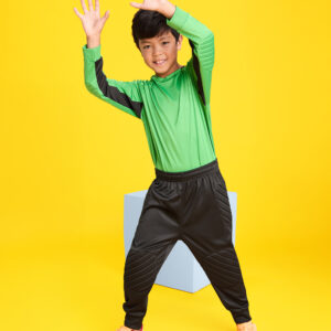 Pantalón largo de portero transpirable. Paneles laterales acolchados. Cintura engomada y cordón de ajuste. Rib 1×1 en tobillos.Composición: 100% poliéster, 250 g/m².Observaciones: *Etiqueta removible. *Tejido técnico. *Modelo transpirable.
